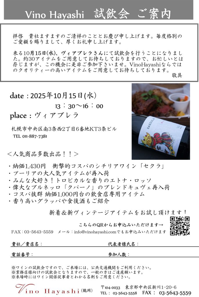 Vino Hayashi 主催業務向けイタリアワイン試飲会